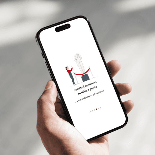 L’app dispone di un back-end che consente alla Fondazione di gestire autonomamente** testi, contenuti multimediali e audio** con sintesi vocale modulabile tramite tag SSML. Inoltre, è disponibile in italiano, inglese, francese e spagnolo, con gestione dei contenuti multilingua integrata nel back-end.